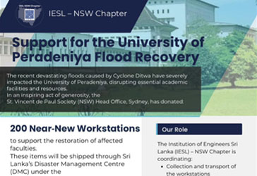 Our mission is to cultivate a vibrant community of engineers dedicated to advancing knowledge, fostering collaboration, and driving positive change. Through lifelong learning, ethical practice, and advocacy, we empower our members to be leaders and innovators in engineering and technology, making a meaningful impact on society, not only in New South Wales but also in Australia, Sri Lanka and the world.